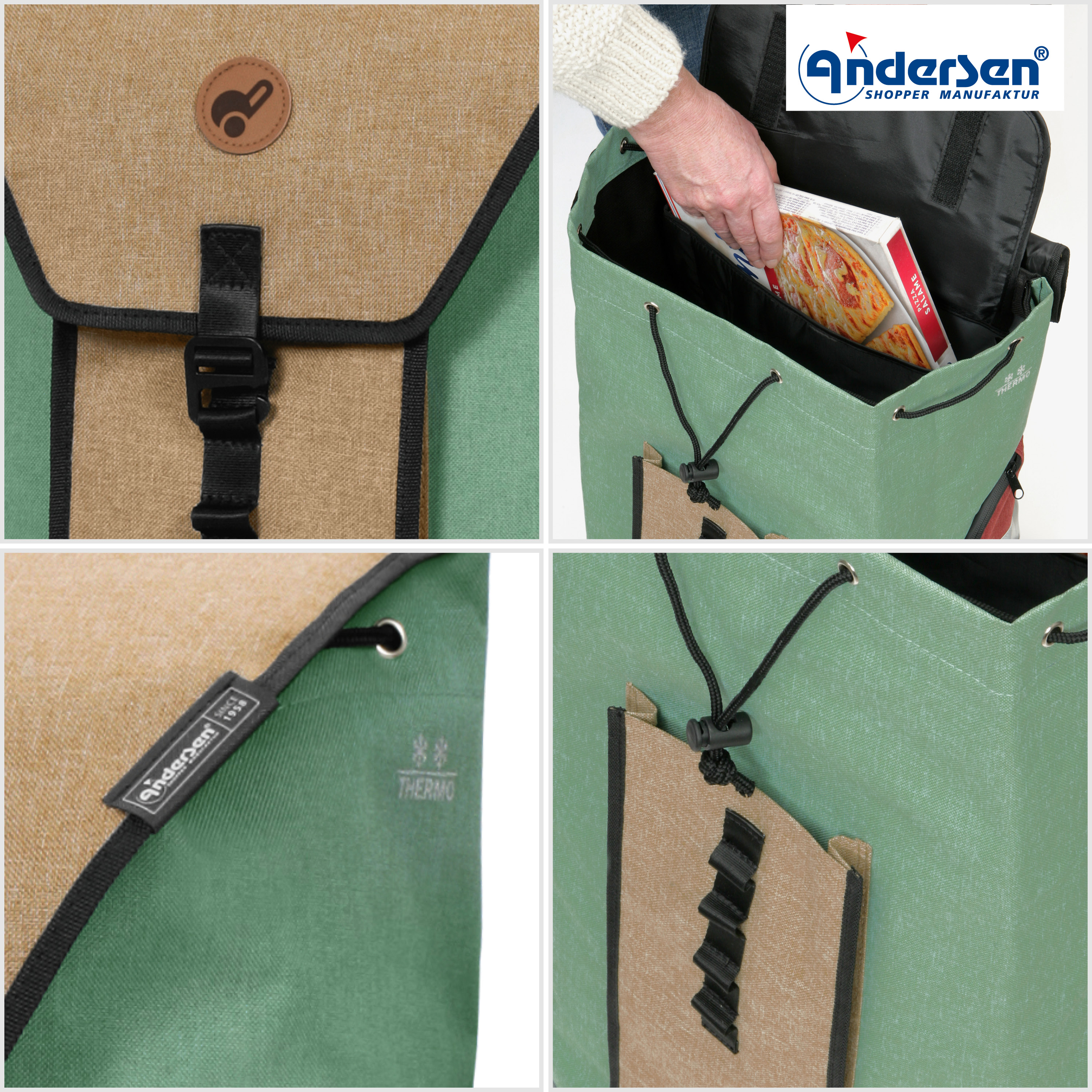 Die trendige Tasche Oli.P 2.0, vom Sänger und Entertainer persönlich für Andersen designt. Mit großen Seitenfächern, einer versteckten Vortasche und dem Thermofach perfekt geeignet für den Einkauf auf dem Wochenmarkt.