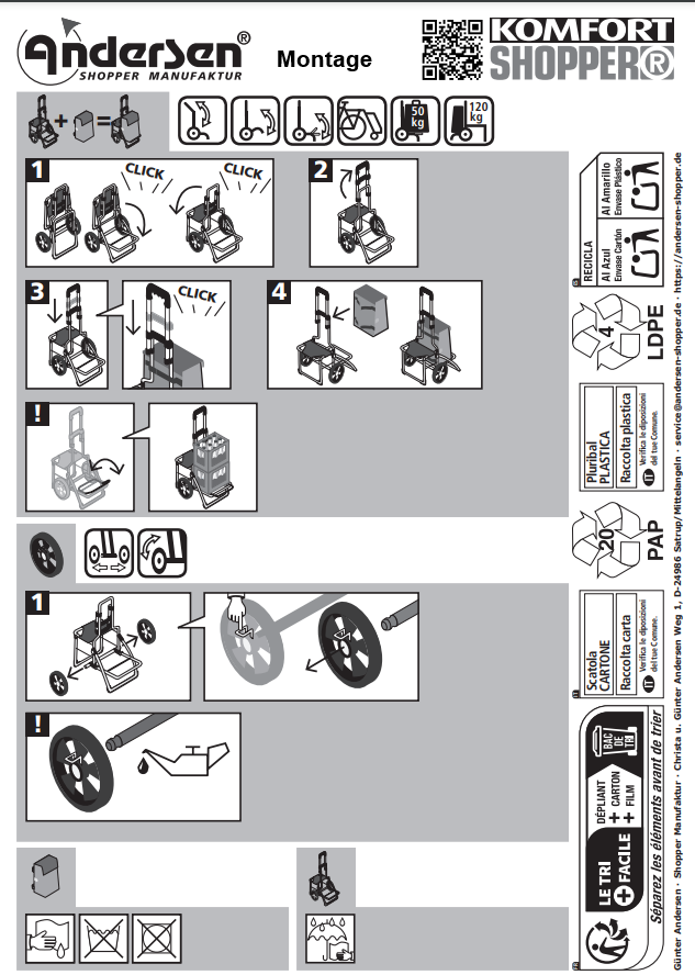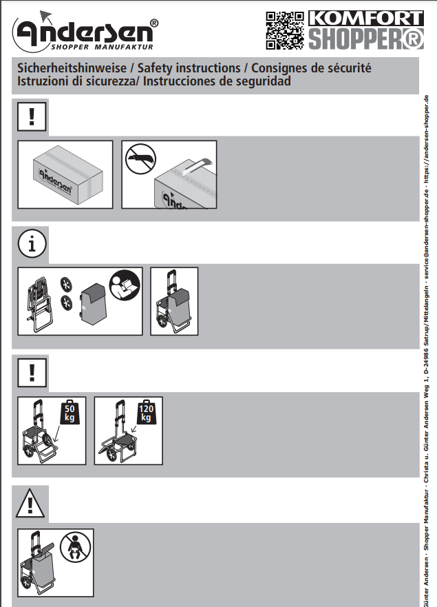 Starker Kundendienst: 3 Jahre Garantie und umfangreicher Ersatzteilservice auch über die Garantie hinaus. Viele Ersatzteile bietet die ANDERSEN Shopper Manufaktur kostenlos an. Die Kundenzufriedenheit steht an erster Stelle.