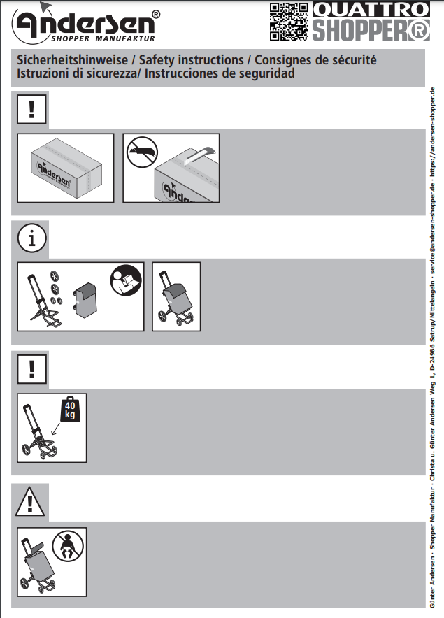 Starker Kundendienst: 3 Jahre Garantie und umfangreicher Ersatzteilservice auch über die Garantie hinaus. Viele Ersatzteile bietet die ANDERSEN Shopper Manufaktur kostenlos an. Die Kundenzufriedenheit steht an erster Stelle.