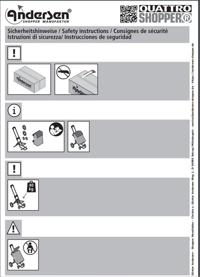 Starker Kundendienst: 3 Jahre Garantie und umfangreicher Ersatzteilservice auch über die Garantie hinaus. Viele Ersatzteile bietet die ANDERSEN Shopper Manufaktur kostenlos an. Die Kundenzufriedenheit steht an erster Stelle.