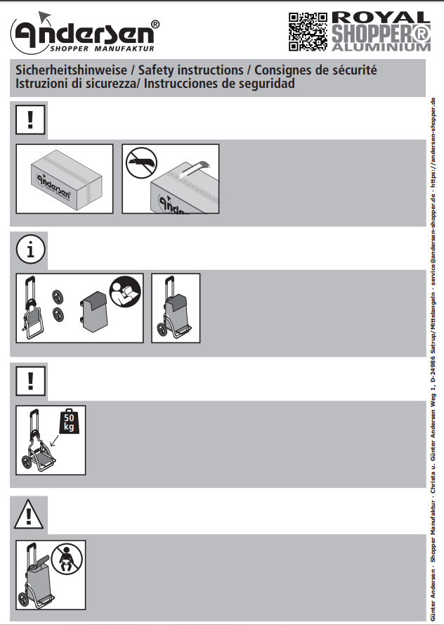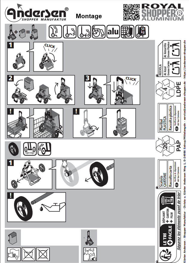 Starker Kundendienst: 3 Jahre Garantie und umfangreicher Ersatzteilservice auch über die Garantie hinaus. Viele Ersatzteile bietet die ANDERSEN Shopper Manufaktur kostenlos an. Die Kundenzufriedenheit steht an erster Stelle.