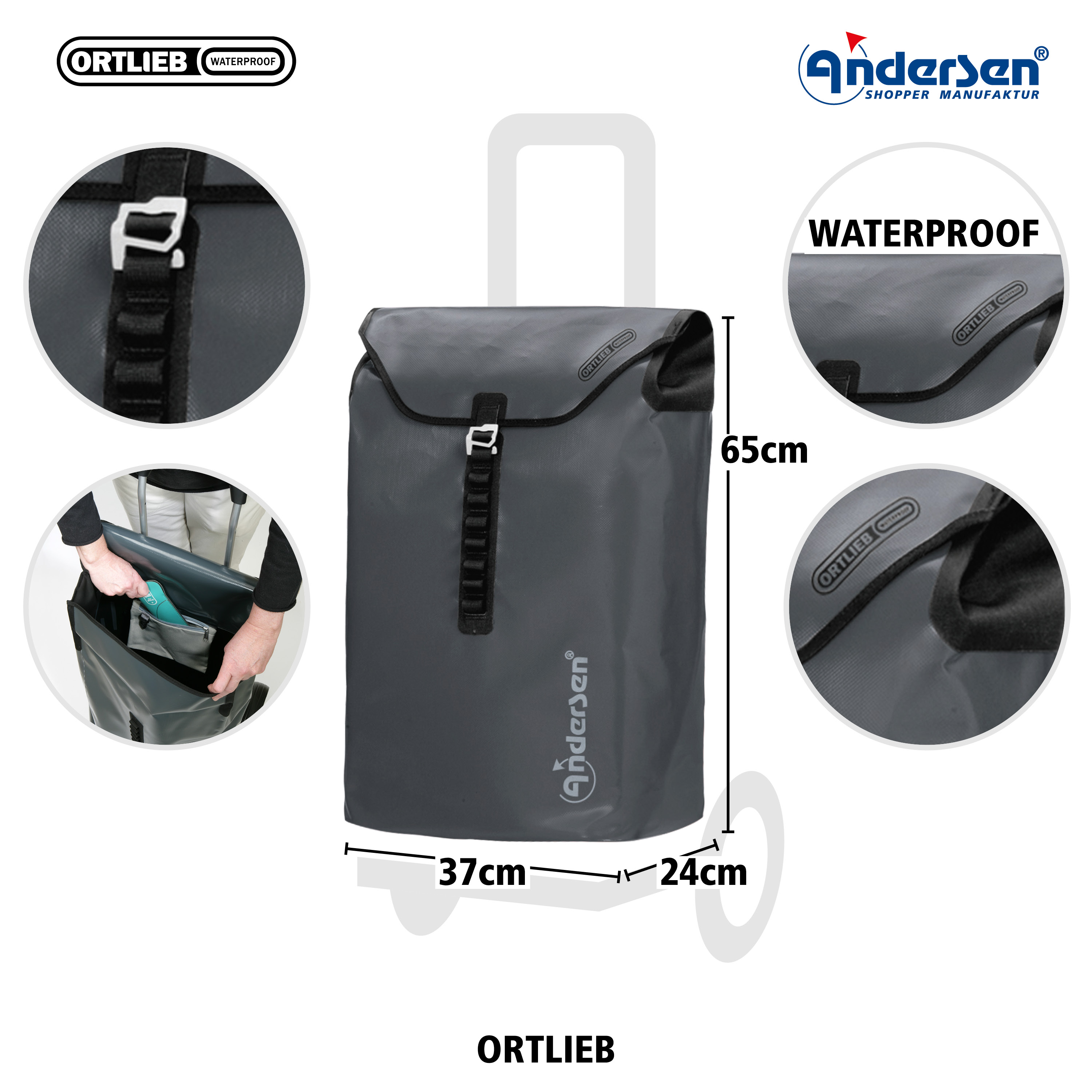Produktinformationen "Andersen Royal Shopper mit Tasche Ortlieb in Gelb, Anthrazit, Rot oder Petrol, Kugellagerrad"