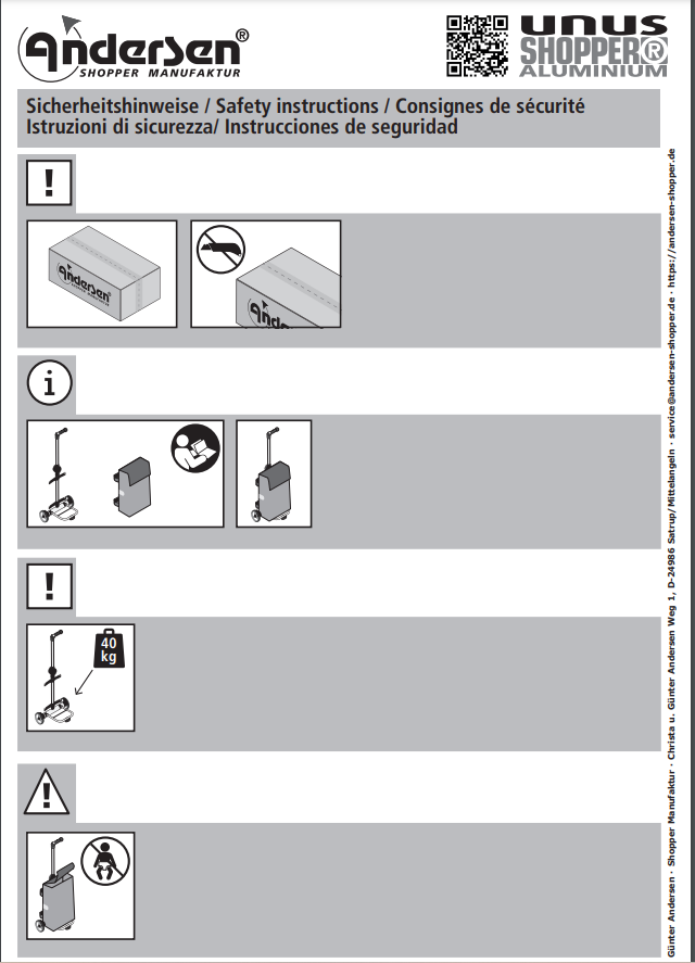 Starker Kundendienst: 3 Jahre Garantie und umfangreicher Ersatzteilservice auch über die Garantie hinaus. Viele Ersatzteile bietet die ANDERSEN Shopper Manufaktur kostenlos an. Die Kundenzufriedenheit steht an erster Stelle.