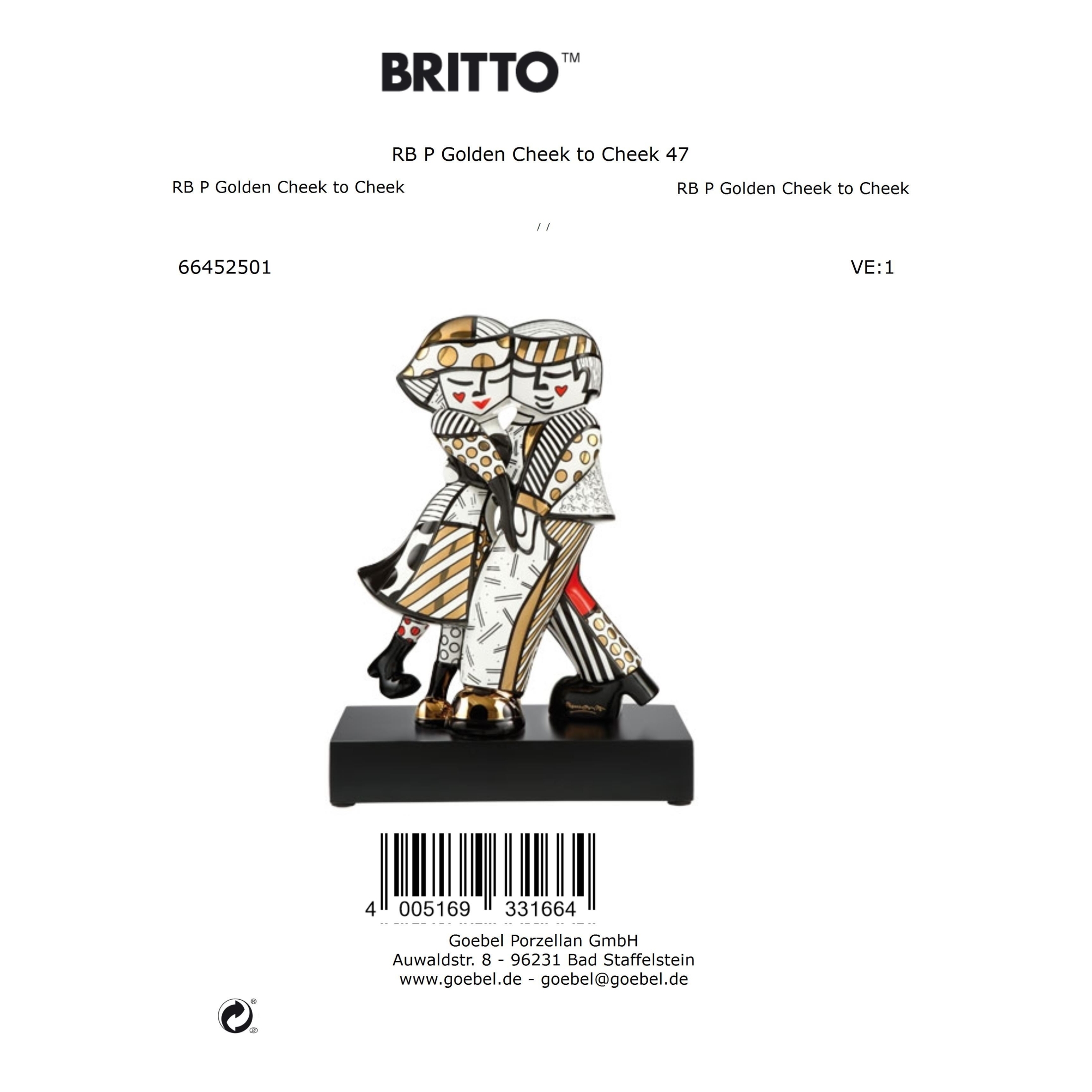 Produktinformationen "Goebel Dekofigur Romero Britto Pop Art - Golden Cheek to Cheek"