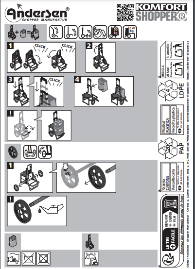 Starker Kundendienst: 3 Jahre Garantie und umfangreicher Ersatzteilservice auch über die Garantie hinaus. Viele Ersatzteile bietet die ANDERSEN Shopper Manufaktur kostenlos an. Die Kundenzufriedenheit steht an erster Stelle.