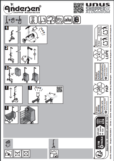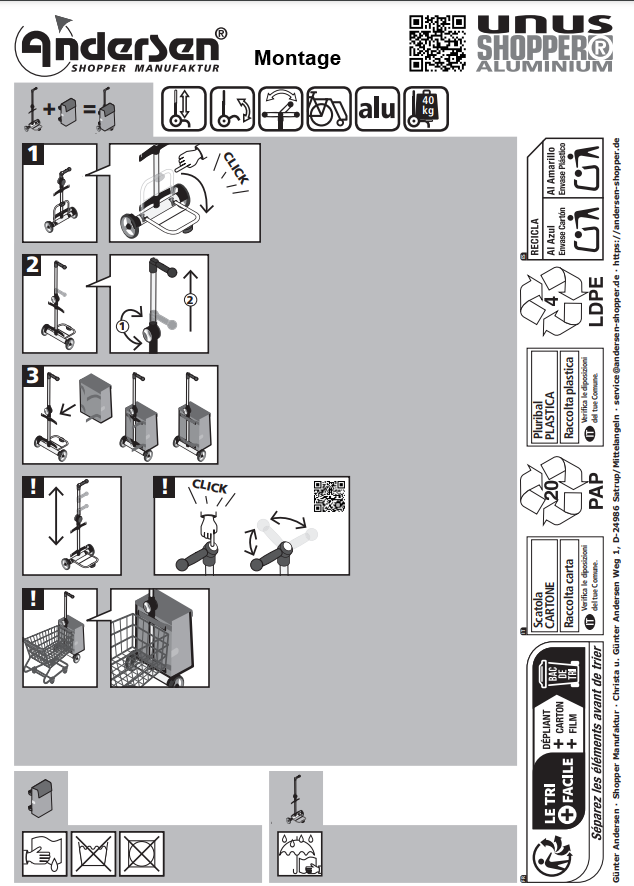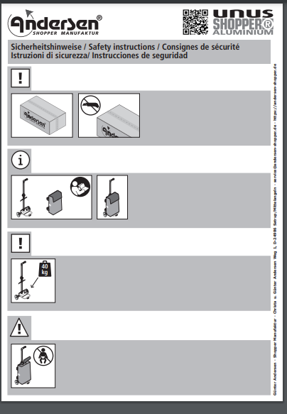 Starker Kundendienst: 3 Jahre Garantie und umfangreicher Ersatzteilservice auch über die Garantie hinaus. Viele Ersatzteile bietet die ANDERSEN Shopper Manufaktur kostenlos an. Die Kundenzufriedenheit steht an erster Stelle.