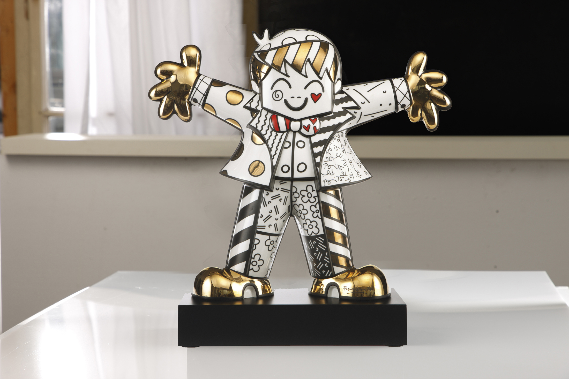 Die Objekte von Romero Britto sind in erster Linie den Themen Liebe, Freundschaft, Hoffnung und Freude gewidmet.